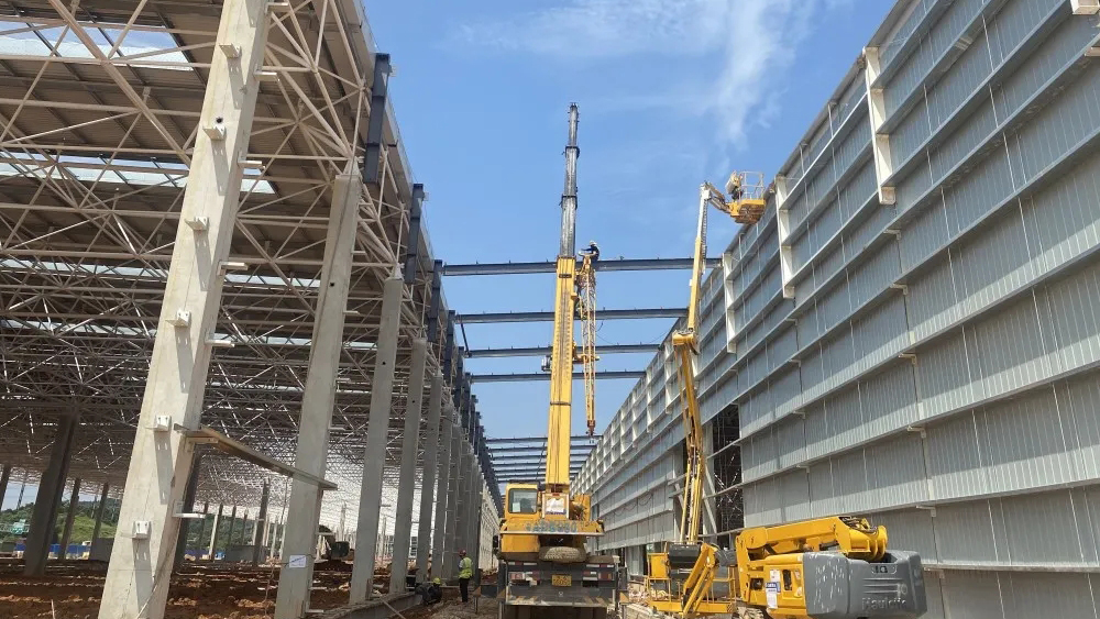 墻面外板使用TDC51D+Z220,PVDF鐵青灰、火石灰。