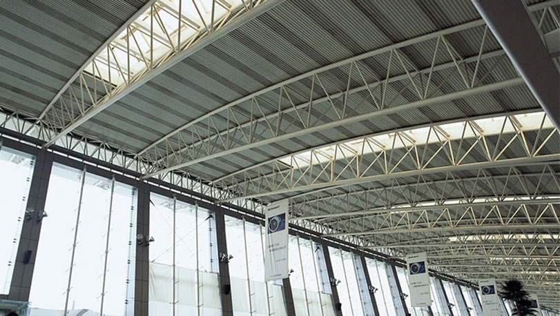 咸陽國際機(jī)場(chǎng)位于中國內(nèi)陸中心,是西北地區(qū)最大的空中交通樞紐。2009年開始擴(kuò)建,目前有2座候機(jī)樓,共10萬平方米,外墻面及外屋面都采用了寶鋼鍍鋁鋅彩涂鋼板。外屋面采用白灰PE鋼板,牌號(hào)為TDC51D+AZ,鋁鋅重量為150克/平方米。