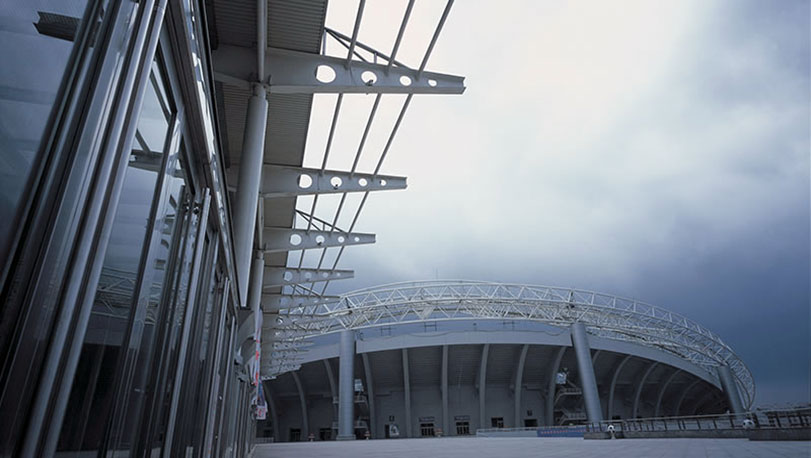 哈爾濱國際會展體育中心容量巨大、功能完善。具備建筑面積51000平方米的比賽用場地,面積為3525平方米的體育館,可容納1.1萬名觀眾,這里可進(jìn)行冰球、籃球、排球、羽毛球、體操、手球等多種項(xiàng)目的比賽及大型文藝藝術(shù)演出。屋面使用了寶鋼熱鍍鋅氟碳彩涂板。