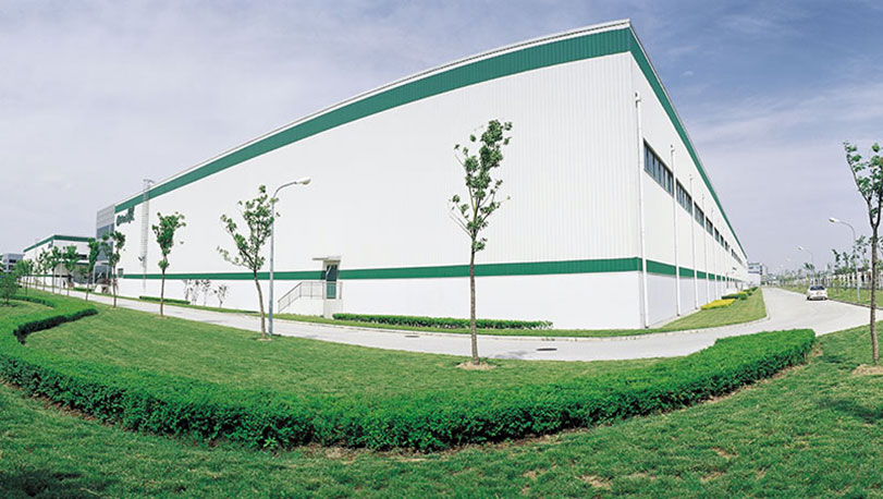 上海普洛斯物流位于松江工業(yè)區(qū),松江是上海的西入口,擁有非常便利的交通條件,2010年建設(shè)。屋面為鍍鋁鋅光板,牌號為S350GD+AZ,鋁鋅重量為165克/平方米。墻面采用寶鋼高耐侯鍍鋁鋅彩涂鋼板,顏色主體為白灰,色帶為闊葉綠,鋁鋅層重量150克/平方米,牌號TS300GD+AZ。