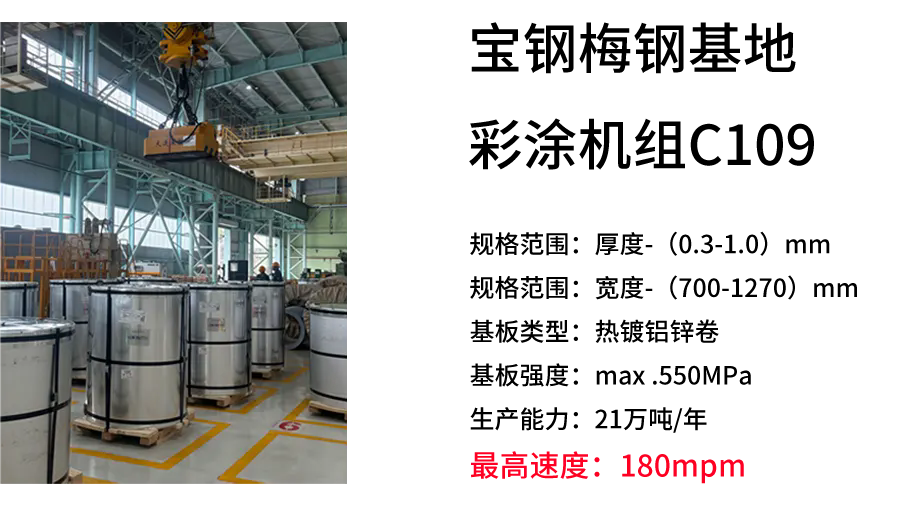 2025年7月中旬,寶鋼股份梅鋼基地冷軋廠新建彩涂機組C109(寶鋼內(nèi)部機組編號)成功產(chǎn)出第一卷彩涂鋼板,這標志著該機組正式宣告投產(chǎn)。作為寶鋼股份的第七條彩涂機組,C109機組的成功落地,為寶鋼彩涂產(chǎn)品家族注入了新的活力與力量。