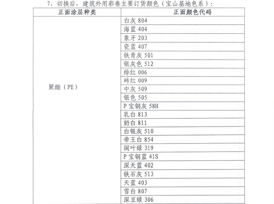 9月5日,寶鋼黃石發(fā)布了《寶鋼黃石公司關(guān)注彩涂顏色全面切換的告知函》,其告知函全文如下: