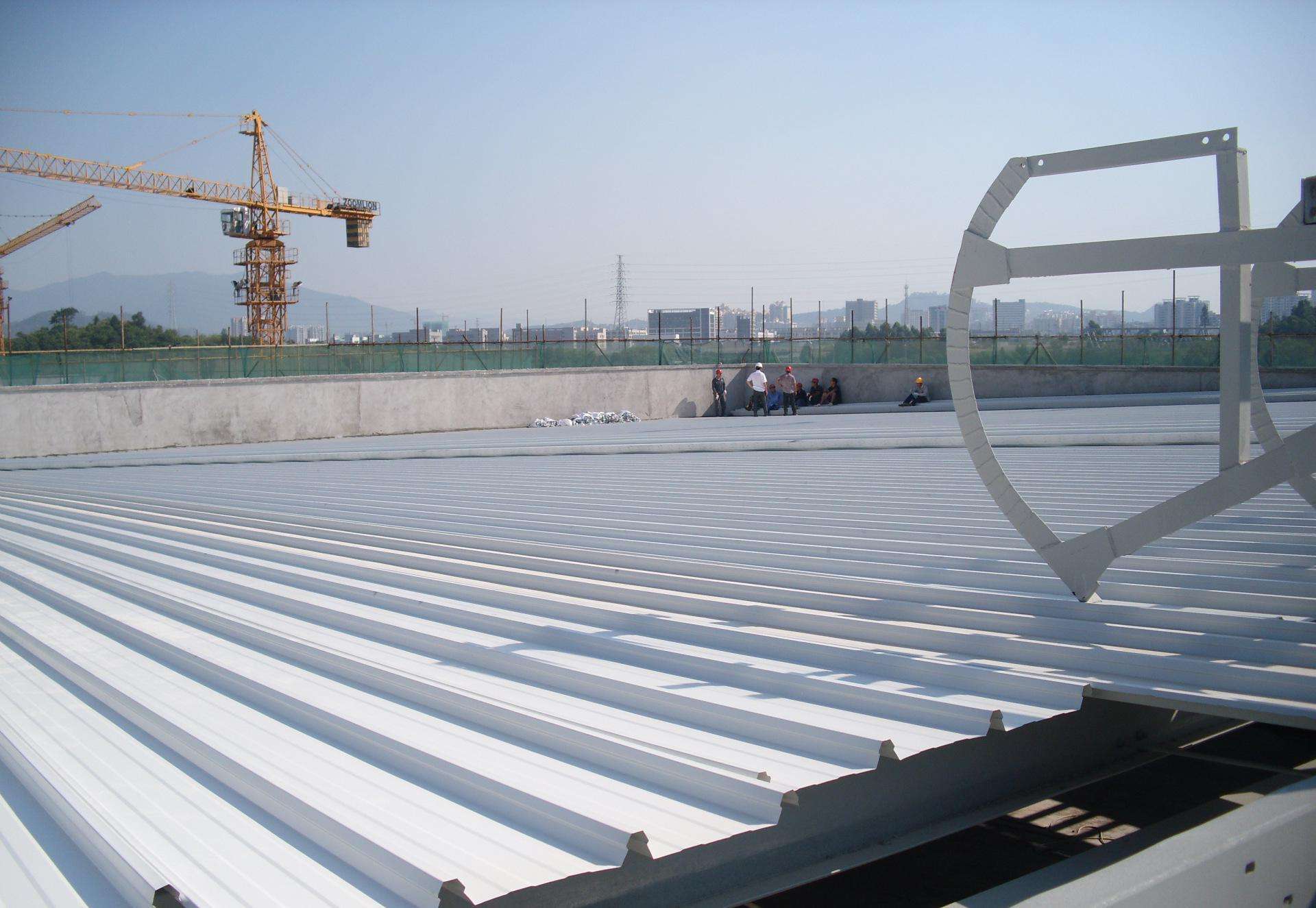 其中彩鋼板的冷暖色系以及它的漆面反射能力都和輻射有關(guān)。真正進(jìn)入建筑物的熱量就是因?yàn)檩椛洌溥M(jìn)入熱量的比例多少將取決于彩鋼板下表面的特性。下表面帶漆或暗色的彩鋼板,將有較高的反射能力,可將留下的熱量大幅度的輻射進(jìn)去,而下表面帶閃亮的或磨光表面的彩鋼板發(fā)散力很低,只能將很小一部分熱量輻射進(jìn)建筑物中。所以對(duì)涂漆或暗色下表面的高發(fā)散力和熱輻射能力,可通過(guò)在彩鋼板下方安裝反射箔片層加以克服。