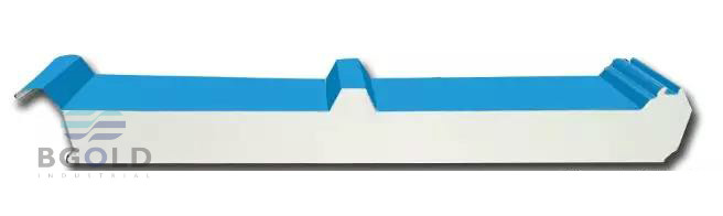 3、在第一塊板就位合適后,依次安裝就位第二塊,并應(yīng)主導(dǎo)風(fēng)向鋪設(shè)。板間密封時(shí)可用鐵釘臨時(shí)固定在夾芯板側(cè)面。