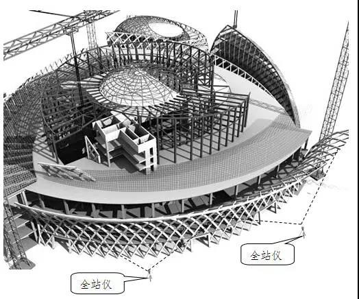 作為施工的依據,在施工過程中進行的一系列測量工作,銜接和指導各工序的施工,它貫穿于整個鋼結構施工過程,是鋼結構施工的關鍵技術工作之一。通過高精度的測量和校正使得鋼構件安裝到設計位置上,滿足絕對精度的要求,因此測量控制是保證鋼結構安裝質量以及工程進度的關鍵工序。