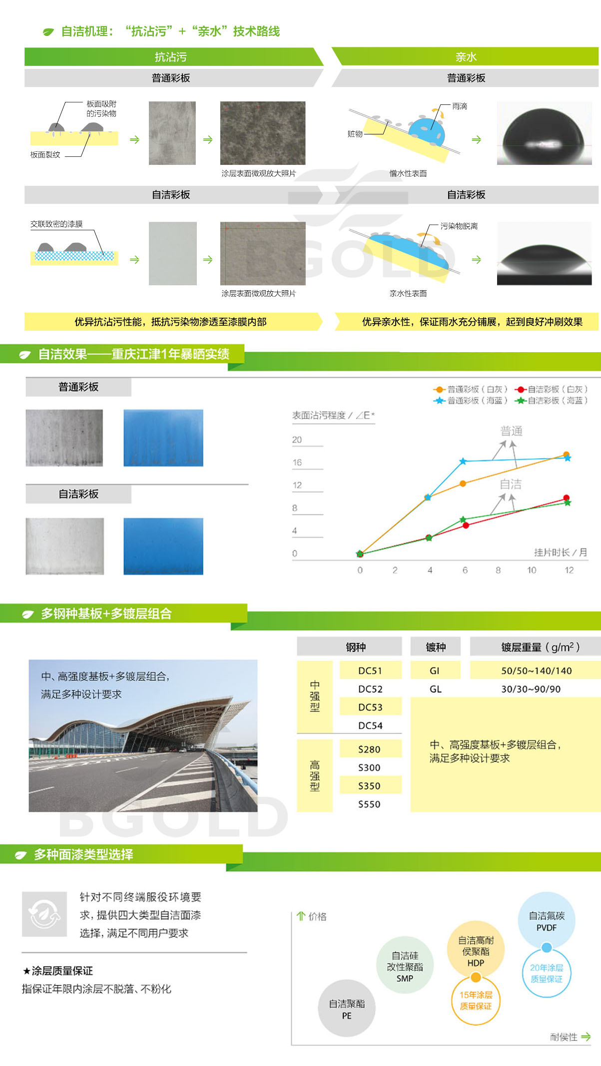鋼專門針對污染地區(qū)建筑用材開發(fā)的一系列具有自我清潔功能的彩涂鋼